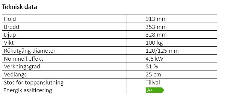 Westbo Nobel är utrustad med en kokplatta på toppen och kan anslutas bakåt. Med en extra stos som tillval går det att ansluta uppåt.